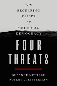 Four Threats examines five tumultuous periods in the past when democracy was under siege. Over and over again, people braced themselves for secession, civil war, the loss of rights, or the rise of an autocratic president. In each episode, each of the four pillars of democracy was put at risk: free and fair elections, the rule of law, the legitimacy of the opposition, and the integrity of rights. On several occasions, antidemocratic forces prevailed and caused real harm, some of it with long-enduring consequences.